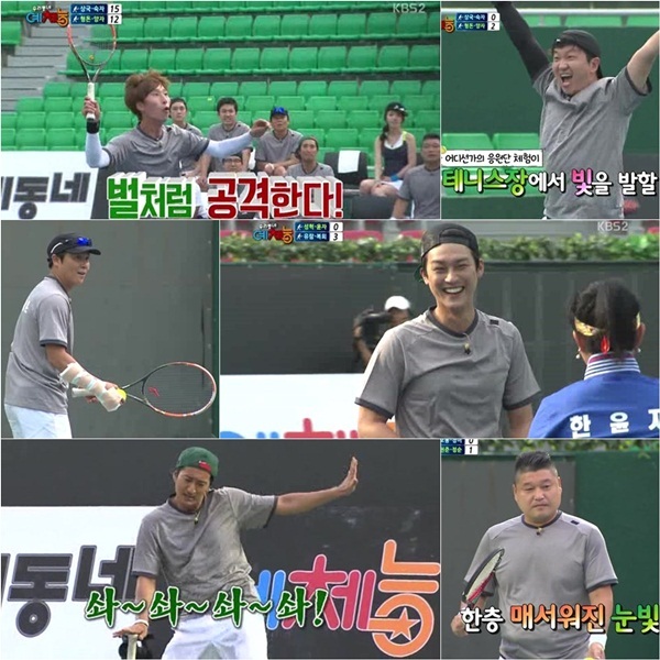 ‘예체능’ 테니스팀의 실력이 대폭발했다. 지난 14일 방송된 KBS 2TV 예능프로그램 '우리동네 예체능'(이하 '예체능') 75회에서는 연기자 '갓지성' 성혁과 이광용 아나운서의 입단 테니스와 함께 대한민국 여자 테니스 국가대표 OB로 구성된 '마당회'와 '예체능' 테니스팀의 대결이 펼쳐졌다. 이 과정에서 '예체능' 테니스팀은 몰라보게 성장한 일취월장한 실력으로 눈길을 사로잡았다.