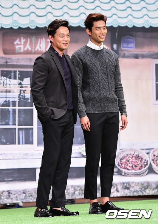 15일 오후 서울 여의도동 63컨벤션센터에서 열린 tvN '삼시세끼' 제작발표회에서 이서진, 옥택연이 포토타임을 갖고 있다.