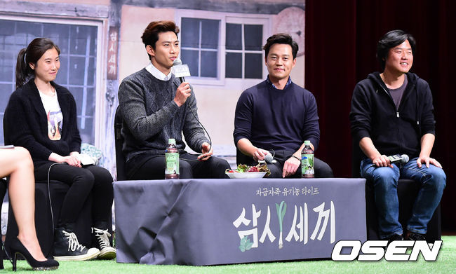 15일 오후 서울 여의도동 63컨벤션센터에서 열린 tvN '삼시세끼' 제작발표회에 박희연 PD(왼쪽부터), 옥택연, 이서진, 나영석 PD가 참석하고 있다.