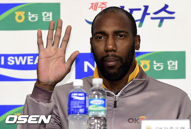 OK저축은행 용병 시몬이 인사하고 있다.