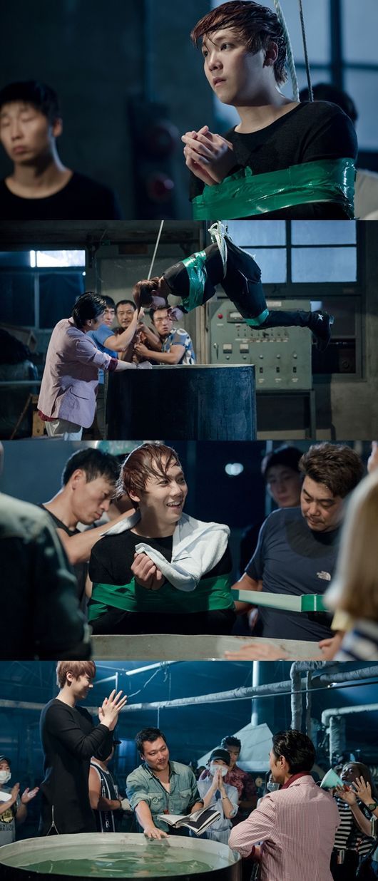 오진석PD의 '큐사인'과 함께 이홍기의 몸은 물이 담긴 드럼통 안으로 들어갔다가 나오기를 반복했다. 당시 카메라 위치를 바꾸면서 계속된 촬영에서 이홍기는 비명과 대사를 내뱉으며 연거푸 물에 빠졌다.