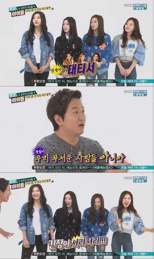 이에 MC들은 "우리 무서운 사람들 아니다. 다 불어라"라고 말했고, 긴장을 한 레드벨벳은 이들의 제안으로 소리를 지르며 긴장을 풀어 귀여움을 자아냈다.
