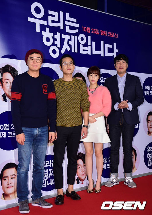 15일 오후 서울 삼성동 메가박스 코엑스에서 열린 영화 '우리는 형제입니다' VIP 시사회에서 장진 감독(왼쪽부터), 김성균, 윤진이, 조진웅이 포토타임을 갖고 있다.