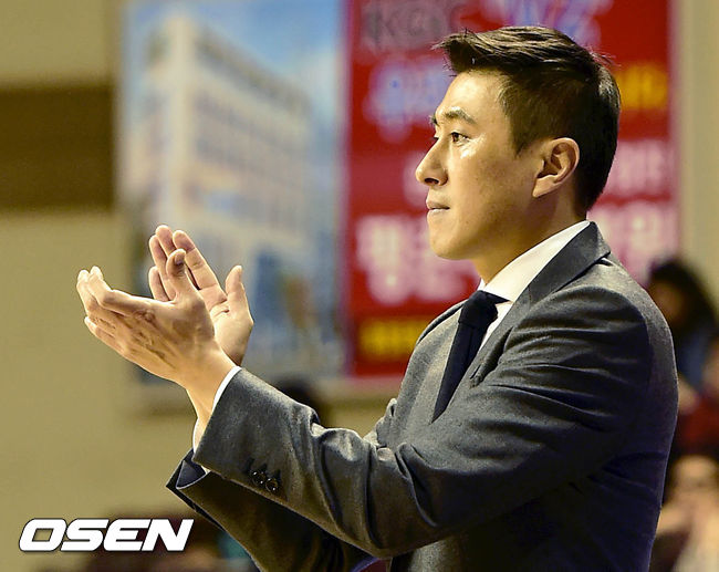 4쿼터 삼성 이상민 감독이 팀의 슛 성공에 박수를 치고 있다.