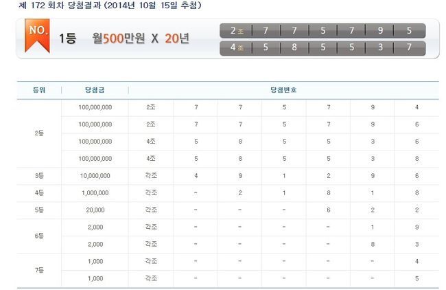 제172회 연금복권 당첨번호가 공개됐다.