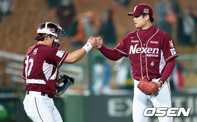 경기 종료 후 넥센 박동원과 손승락이 승리의 기쁨을 나누고 있다. /sunday@osen.co.kr