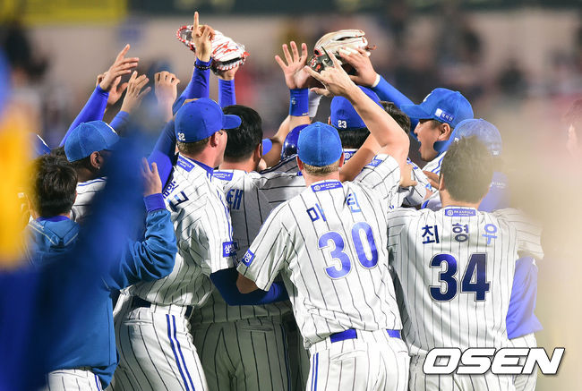 경기 종료 직후 삼성 선수들이 서로 포옹하며 정규 시즌 우승을 만끽하고 있다./dreamer@osen.co.kr
