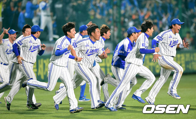경기 종료 직후 삼성 선수들이 그라운드로 달려가며 우승을 기뻐하고 있다./dreamer@osen.co.kr