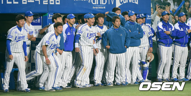 9회초 2사 1루 상황 삼성 더그아웃 선수들이 동료 선수들의 플레이를 지켜보고 있다./dreamer@osen.co.kr