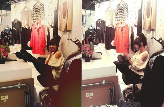 사진 속 신소율은 옷들이 가득 걸려 있는 세트장에서 책상에 다리를 올린 채 농염한 자태를 뽐내며 휴식을 취하고 있다. 환하게 웃는 미소가 눈길을 끈다.