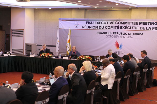 2015 광주유니버시아드 조직위원회(이하 조직위)가 16일 홀리데이인 광주 호텔에서 열린 세계대학스포츠연맹(FISU) 집행위원회에서 광주대회 진행사항을 보고했다.