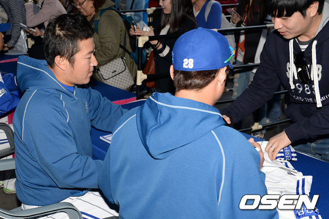 16일 오후 대구시민운동장야구장에서 진행될 '2014 한국야쿠르트 세븐 프로야구' 삼성 라이온즈와 삼성 최형우가 팬사인회를 갖고 있다.