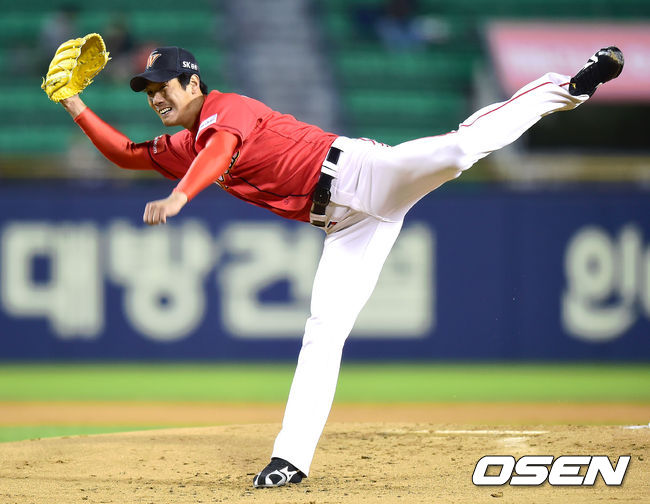 16일 오후 서울 잠실야구장에서 '2014 한국야쿠르트 세븐 프로야구' 두산 베어스와 SK 와이번스의 경기가 열렸다. 1회말 SK 김광현이 역투하고 있다. 4강 진출 좌절 위기인 SK 와이번스가 최후의 보루를 꺼내들었다. SK가 포스트시즌에 진출하기 위해서는 남은 2경기에서 모두 승리해야만 하고, LG가 남은 1경기에서 패해야만 한다. 양 팀 중 한 팀이라도 무승부가 발생하면 4위는 LG가 차지한다. 그야말로 벼랑 끝에 선 SK는 에이스 김광현을 내세웠다. 김광현은 아시안게임 대표팀에서 복귀한 뒤 2경기에서 썩 좋지만은 않았다. 11이닝 동안 4실점(3자책)으로 대량 실점은 피했지만, 볼넷이 10개나 될 정도로 투구 내용은 만족스럽지 못했다. 그래도 가장 어려운 순간에도 고민하지 않고 내보낼 수 있는 투수라는 점에는 변함이 없다. 김광현에 맞서는 두산 선발은 이현승이다. 이현승도 올해 선발로 나선 최근 2경기 성적이 들쭉날쭉하다. 지난 5일 마산 NC전에서는 5이닝 2실점으로 호투했지만, 4일 휴식 후 치른 10일 대전 한화전에서는 1⅓이닝 2실점하고 조기 강판됐다. / youngrae@osen.co.kr
