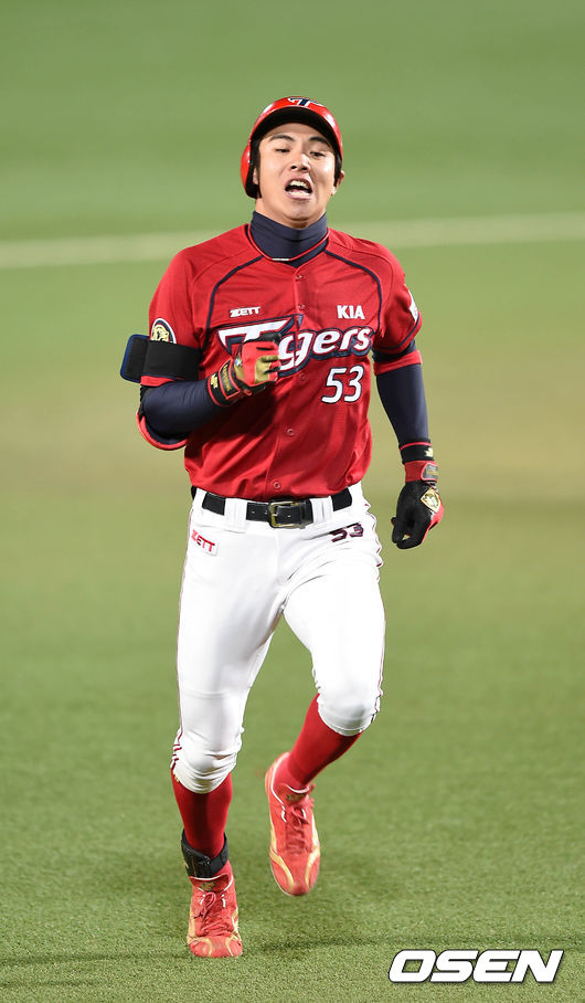 2회초 2사 1,3루에서 KIA 이대형이 우중간을 가르는 2타점 적시 3루타를 치고 그라운드를 달리고 있다.