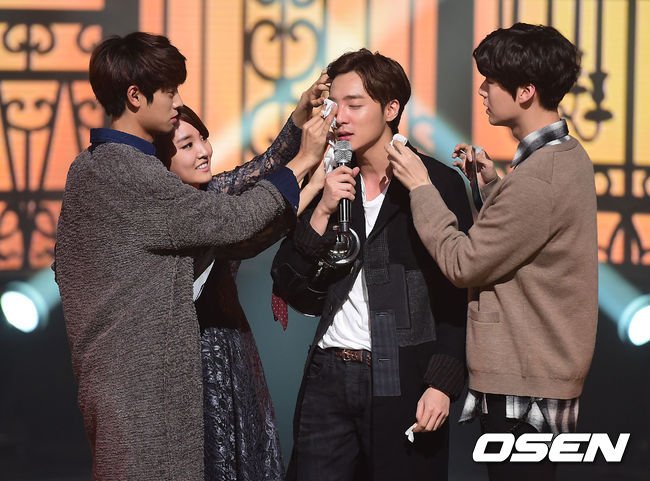 16일 오후 서울 상암동 CJ E&M 센터에서 열린 Mnet '엠카운트다운'(이하 엠카) 생방송에서 1위를 차지한 로이킴이 1위공약인 화장을 지우고 있다.