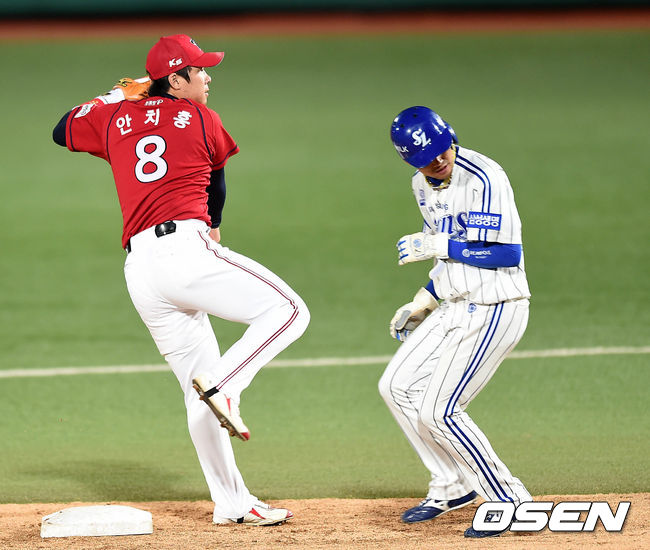 3회말 무사 1,2루에서 삼성 나바로의 병살타때 1루주자 김상수가 포스아웃 처리되고 있다.