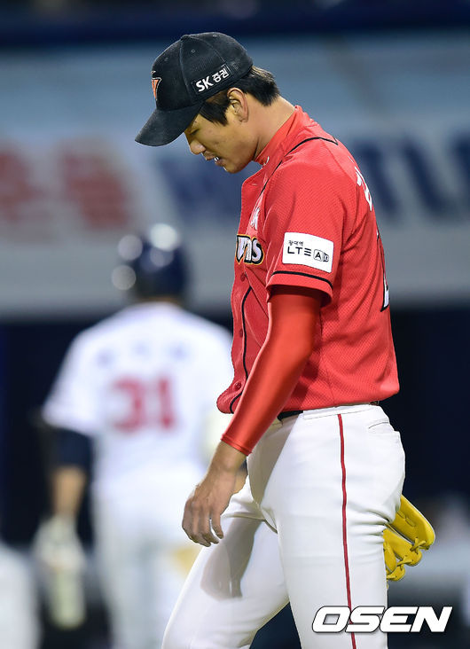16일 오후 서울 잠실야구장에서 '2014 한국야쿠르트 세븐 프로야구' 두산 베어스와 SK 와이번스의 경기가 열렸다. 4회말 1사 2루 SK 김광현이 두산 김응민에게 적시타를 허용한 뒤 아쉬워하고 있다. 4강 진출 좌절 위기인 SK 와이번스가 최후의 보루를 꺼내들었다. SK가 포스트시즌에 진출하기 위해서는 남은 2경기에서 모두 승리해야만 하고, LG가 남은 1경기에서 패해야만 한다. 양 팀 중 한 팀이라도 무승부가 발생하면 4위는 LG가 차지한다. 그야말로 벼랑 끝에 선 SK는 에이스 김광현을 내세웠다. 김광현은 아시안게임 대표팀에서 복귀한 뒤 2경기에서 썩 좋지만은 않았다. 11이닝 동안 4실점(3자책)으로 대량 실점은 피했지만, 볼넷이 10개나 될 정도로 투구 내용은 만족스럽지 못했다. 그래도 가장 어려운 순간에도 고민하지 않고 내보낼 수 있는 투수라는 점에는 변함이 없다. 김광현에 맞서는 두산 선발은 이현승이다. 이현승도 올해 선발로 나선 최근 2경기 성적이 들쭉날쭉하다. 지난 5일 마산 NC전에서는 5이닝 2실점으로 호투했지만, 4일 휴식 후 치른 10일 대전 한화전에서는 1⅓이닝 2실점하고 조기 강판됐다. / youngrae@osen.co.kr