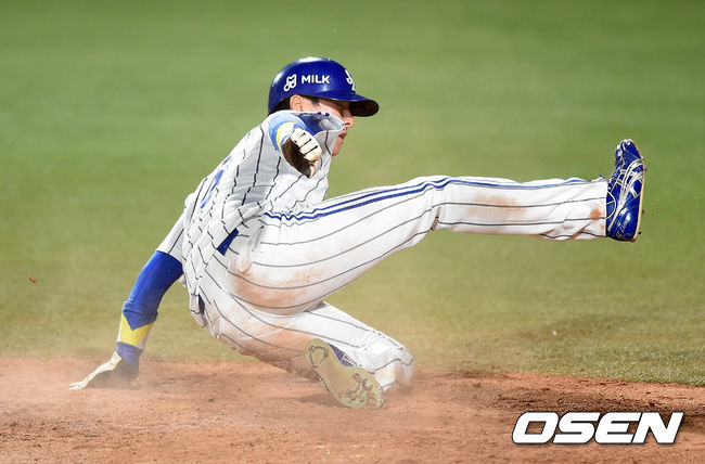 4회말 2사 2,3루에서 삼성 김상수의 우전 2타점 적시타때 2루주자 김정혁이 홈을 밟고 있다.