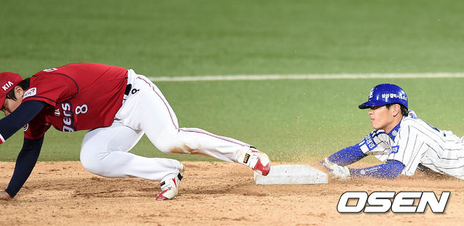 7회말 2사 1루에서 삼성 김헌곤 타석때 1루주자 박찬도가 도루에 성공하고 있다.