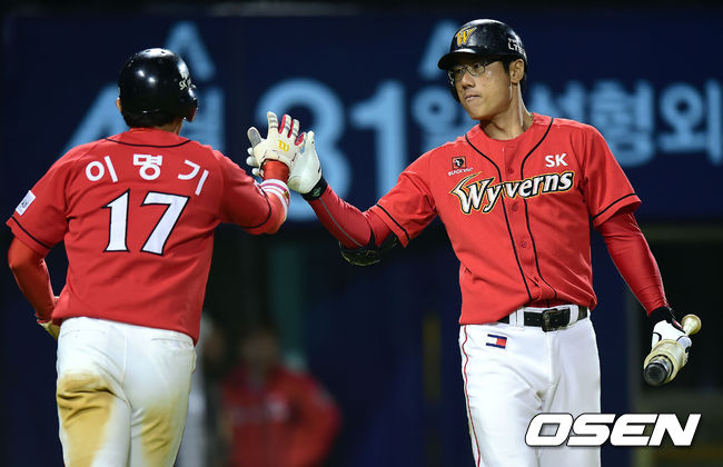 16일 오후 서울 잠실야구장에서 '2014 한국야쿠르트 세븐 프로야구' 두산 베어스와 SK 와이번스의 경기가 열렸다. 연장 10회초 1사 3루 SK 이명기가 이재원의 중견수 희생플라이때 득점에 성공한 뒤 박정권과 기뻐하고 있다. 4강 진출 좌절 위기인 SK 와이번스가 최후의 보루를 꺼내들었다. SK가 포스트시즌에 진출하기 위해서는 남은 2경기에서 모두 승리해야만 하고, LG가 남은 1경기에서 패해야만 한다. 양 팀 중 한 팀이라도 무승부가 발생하면 4위는 LG가 차지한다. 그야말로 벼랑 끝에 선 SK는 에이스 김광현을 내세웠다. 김광현은 아시안게임 대표팀에서 복귀한 뒤 2경기에서 썩 좋지만은 않았다. 11이닝 동안 4실점(3자책)으로 대량 실점은 피했지만, 볼넷이 10개나 될 정도로 투구 내용은 만족스럽지 못했다. 그래도 가장 어려운 순간에도 고민하지 않고 내보낼 수 있는 투수라는 점에는 변함이 없다. 김광현에 맞서는 두산 선발은 이현승이다. 이현승도 올해 선발로 나선 최근 2경기 성적이 들쭉날쭉하다. 지난 5일 마산 NC전에서는 5이닝 2실점으로 호투했지만, 4일 휴식 후 치른 10일 대전 한화전에서는 1⅓이닝 2실점하고 조기 강판됐다. / youngrae@osen.co.kr