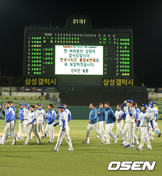 삼성,'마지막 홈경기 꼭 승리하고 싶었는데...'
