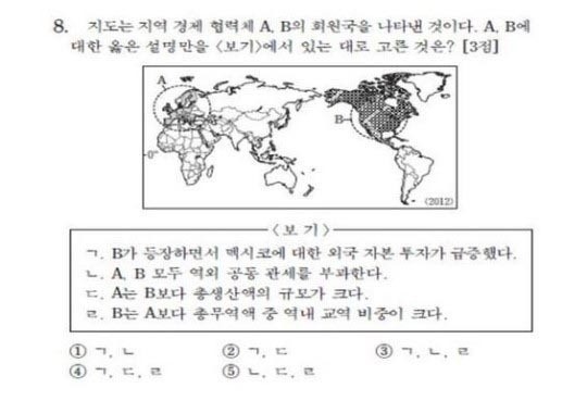 수능 세계지리 8번 문항이 출제 오류 판결을 받았다.