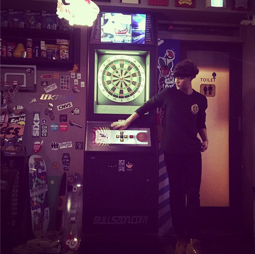 공개된 사진 속 다트 판에 기대선 채 포즈를 취하고 있는 모습이다. 특히 그는 맨투맨 티셔츠와 청바지의 심플한 패션으로 모델 같은 비율을 뽐내고 있어 보는 이들의 시선을 사로잡고 있다.