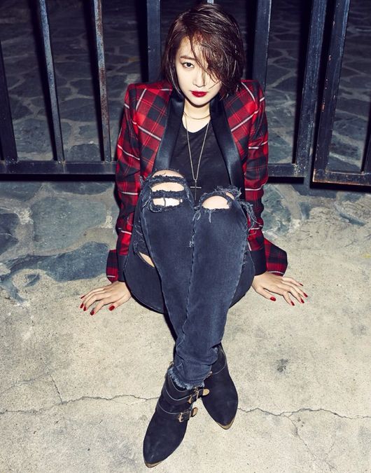 사진 속 고준희는 어두운 밤 조명 아래 앉아 도도한 눈빛으로 카메라를 응시하고 있으며 타탄 체크 재킷과 선명한 레드컬러 매니큐어로 입술과 통일감을 주며 시선을 사로잡았다.