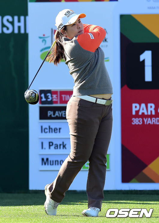 17일 오전 인천 영종도에 위치한 스카이72 골프클럽에서 열린 'LPGA 하나·외환 챔피언십'에서 박인비가 티샷을 하고 있다.