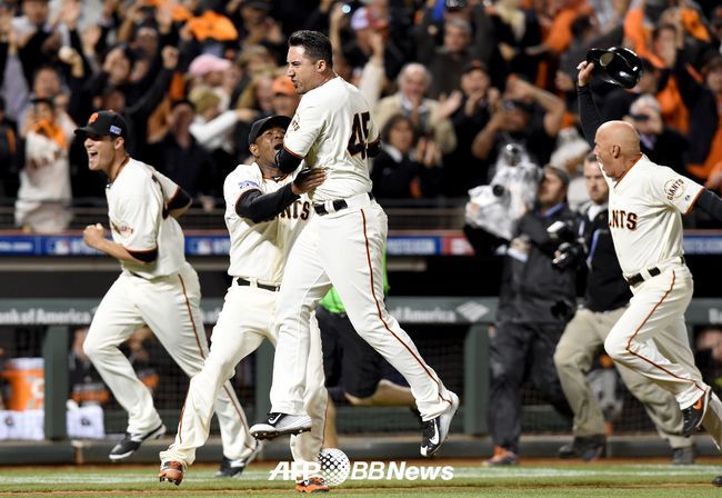 샌프란시스코 자이언츠는 17일(이하 한국시간) 미 캘리포니아주 샌프란시스코의 AT&T파크에서 열린 세인트루이스 카디널스와의 내셔널리그 챔피언십시리즈 5차전에서 3-3으로 맞선 9회 트래비스 이시카와의 끝내기 홈런에 힘입어 6-3으로 역전승을 거뒀다. 시리즈 전적 4승1패로 세인트루이스를 잠재운 샌프란시스코는 2012년 이후 2년 만에 월드시리즈에 진출해 우승에 도전한다.