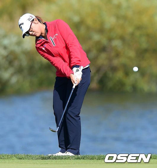 17일 오전 인천 영종도에 위치한 스카이72 골프클럽에서 열린 'LPGA 하나·외환 챔피언십'에서 리디아 고가 아이언샷을 하고 있다.