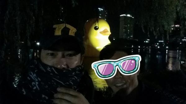 강지환은 17일 오후 자신의 트위터를 통해 “다들 잘 지내고 있죠? 하도 저 오리가 유명하길래 보고 왔어요. 감기조심!”이라는 글과 함께 사진 한 장을 게재했다.