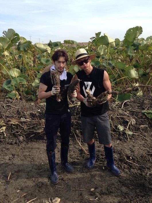 [OSEN=정소영 인턴기자] 지오디 박준형과 배우 오타니 료헤이가 연근 캐기 체험 인증샷을 공개했다.