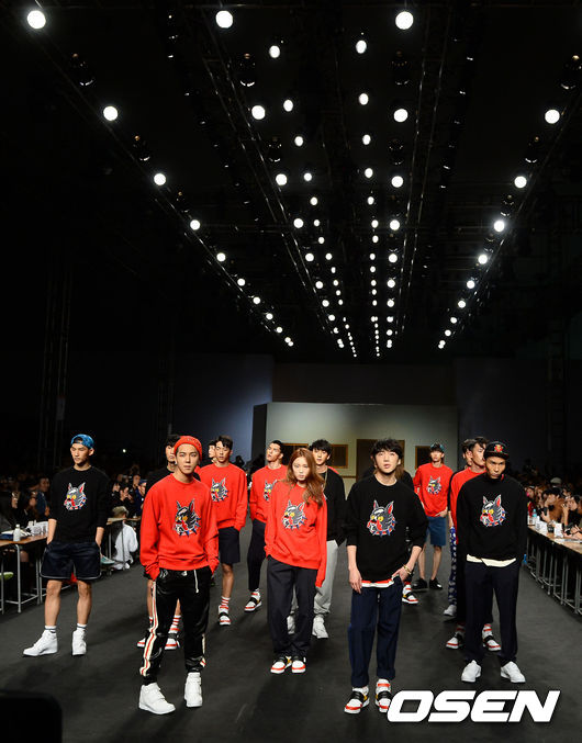 17일 오후 서울 동대문 디자인 플라자에서 열린 '2015 S/S 서울패션위크' 고태용 비욘드 클로젯(beyond closet)에서 위너 송민호 강승윤과 모델들이 피날레 무대를 선보이고 있다
