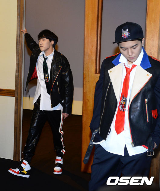 17일 오후 서울 동대문 디자인 플라자에서 열린 '2015 S/S 서울패션위크' 고태용 비욘드 클로젯(beyond closet) 리허설에서 위너 멤버 강승윤과 송민호가 동선체크를 하고 있다.