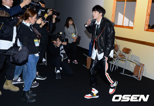 17일 오후 서울 동대문 디자인 플라자에서 열린 '2015 S/S 서울패션위크' 고태용 비욘드 클로젯(beyond closet) 리허설에서 위너 멤버 강승윤이동선체크를 하고 있다.