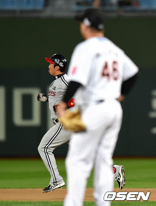 1회초 2사 1루에서 LG 이병규가 좌월 투런 홈런을 치고 그라운드를 돌고 있다.
