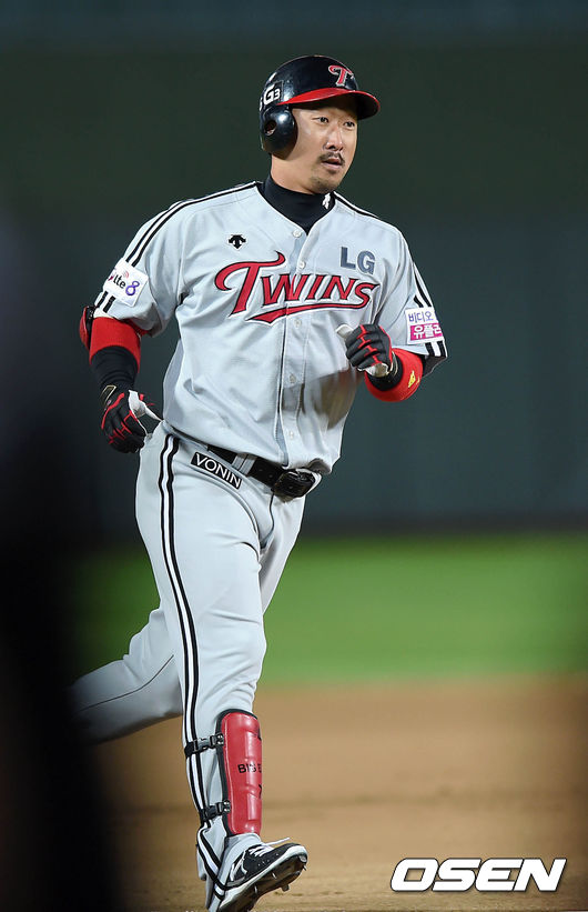 1회초 2사 1루에서 LG 이병규가 좌월 투런 홈런을 치고 그라운드를 돌고 있다.
