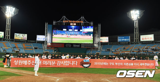경기 종료 후 롯데 선수들이 팬들에게 인사를 하고 있다. /sunday@osen.co.kr