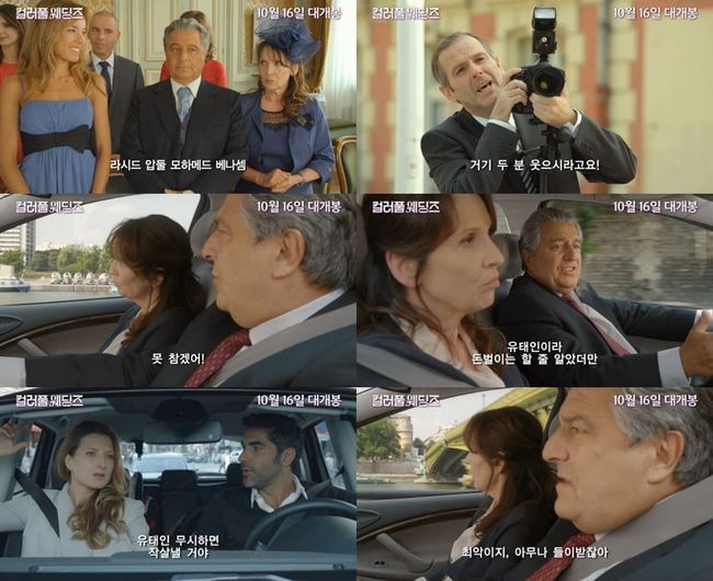 지난 16일 개봉과 동시에 입소문 열풍을 일으키고 있는 '컬러풀 웨딩즈'가 아랍인, 유태인, 중국인 그리고 아프리카인 예비 막내 사위까지 단 한 명도 마음에 들지 않아 못마땅해 하는 클로드 부부의 거침없는 뒷담화 영상을 공개한 것.