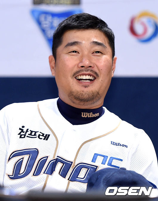 공식 행사에 앞서 NC 이호준이 자리에 앉아 행사를 기다리고 있다.