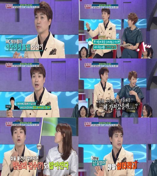 방송인 박수홍이 ”여자친구를 만날 때마다 자신의 애장품이 사라진다”고 고충을 털어놓았다.