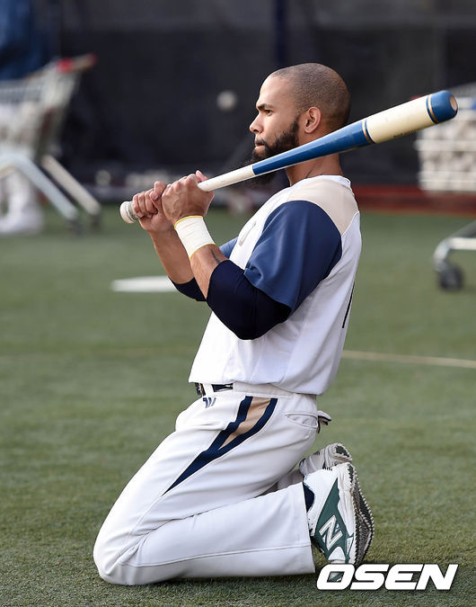 NC 테임즈가 훈련을 하고 있다.