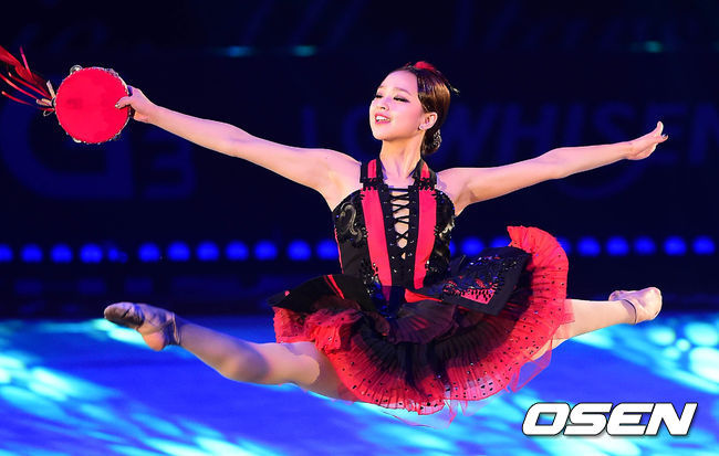이어진 무대에서 손연재는 갈라쇼 ‘에스메랄다’를 처음으로 선보였다. 손연재는 스페인의 여인을 연상시키는 강렬한 붉은색 드레스를 입고 무대에 들어섰다. 이어 탬버린을 치면서 시종일관 절도 있는 동작을 선보였다. 우아함과 깜찍함을 강조했던 기존의 연기와는 180도 반대였다.