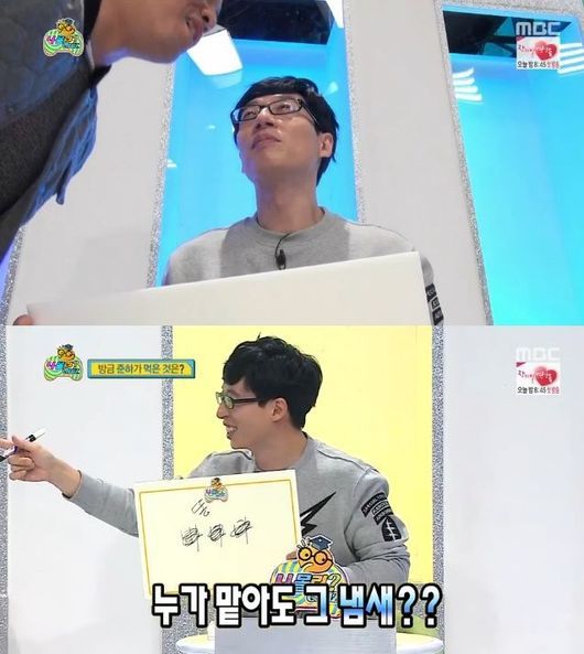 이에 유재석과 하하는 "알겠다"며 '똥'을 정답으로 적어내 폭소케 했다.