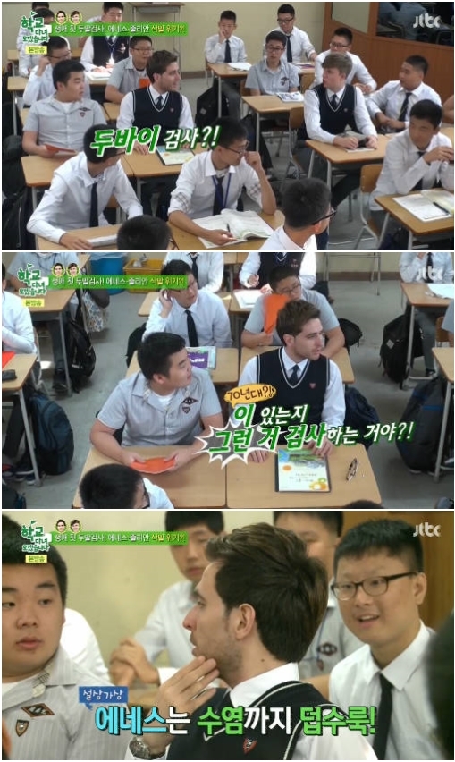 18일 오후 방송된 JTBC 예능프로그램 '학교 다녀오겠습니다'에서 에네스와 줄리안은 1학년 1반 학생으로 학교를 찾았다.