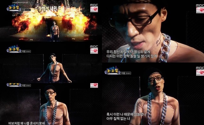 지난 18일 방송된 MBC '무한도전'은 400회 특집으로 꾸며졌지만, 방송 말미 400회 그 이상의 의미를 보여준 센스 있는 사과 퍼포먼스가 펼쳐졌다. '유느님' 유재석이 가수 태양으로 변신해 센스있는 무대를 선보인 것.