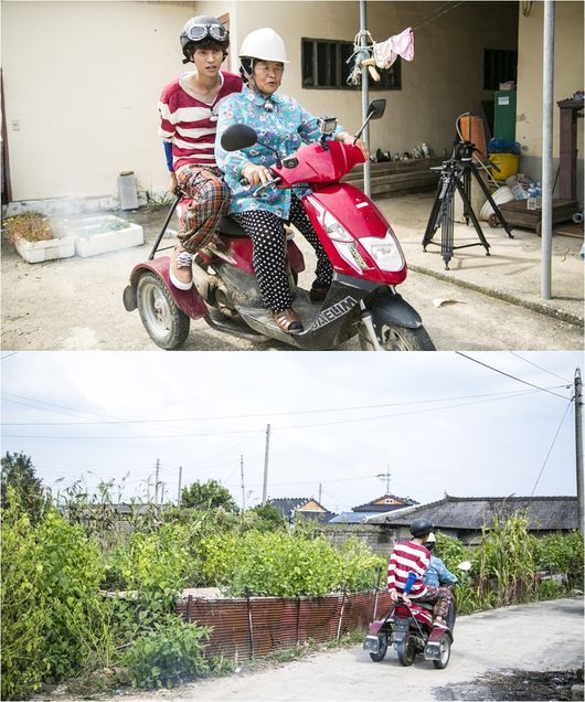 이는 할머니와 신나는 스쿠터 데이트를 하게 된 정준영의 모습으로, 공개된 사진 속 정준영은 운전석이 아닌 할머니의 뒷자리에 탑승해 마냥 즐거워하는 모습이어서 웃음을 자아낸다. 더불어 그는 고글 헬멧과 줄무늬 티셔츠, 몸빼 바지라는 오묘한 패션조합으로 안전모를 쓰고 포스 넘치는 바이커로 변신해 반전 매력을 뽐내고 있는 할머니의 뒤에서 한층 업그레이드 된 귀여움을 발산하고 있어 눈길을 사로잡는다.