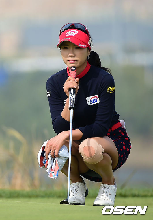 국내 유일의 미국여자프로골프(LPGA) 대회인 'LPGA 하나·외환 챔피언십'(총상금 200만 달러, 우승상금 30만 달러)이 19일 인천 영종도에 위치한 스카이72골프클럽(오션코스, 파72, 6364야드)에서 열렸다. 허윤경이 퍼팅 라인을 살피고 있다. 2002년에 신설돼 매년 개최된 본 대회는 박인비, 리디아 고, 미셸 위, 수잔 페테르센 등 LPGA 최고 선수들이 총 출동하는 가운데, '제15회 하이트진로 챔피언십'에서 우승을 거둬 KLPGA 사상 최초로 단일 시즌 상금 10억 원을 돌파해 상금순위 1위 자리를 굳힌 LPGA 메이저대회 '에비앙 챔피언십' 우승자 김효주가 출전한다. KLPGA와 LPGA를 대표하는 선수들이 각축을 벌이는 가운데 지난해까지 190만 달러였던 총상금이 200만 달러로 증액되었고, 대회가 3라운드에서 4라운드로 확장되어 우승컵을 향한 더욱 흥미 진진한 경쟁이 예상된다. 하나금융그룹이 주최하고 LPGA가 주관하는 이번 대회는 J골프를 통해 생중계 된다. / youngrae@osen.co.kr