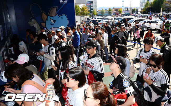 19일 오후 경남 창원 마산야구장에서 2014 한국야쿠르트 세븐 프로야구 포스트시즌 준플레이오프 NC 다이노스와 LG 트윈스의 경기 전 수많은 야구 팬들이 경기시작을 기다리고 있다.